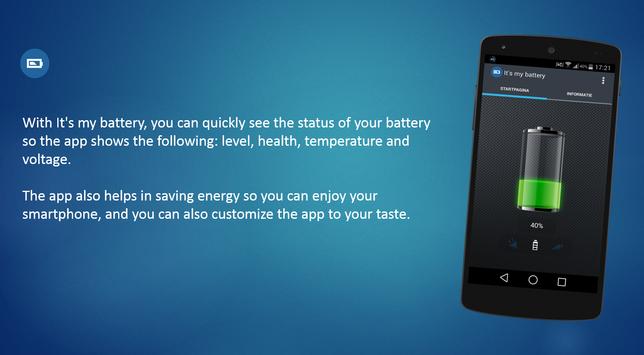 A beautiful, clear and simple design It's my battery for anyone to easily use to optimize the app to your taste, that makes It's my battery unique.