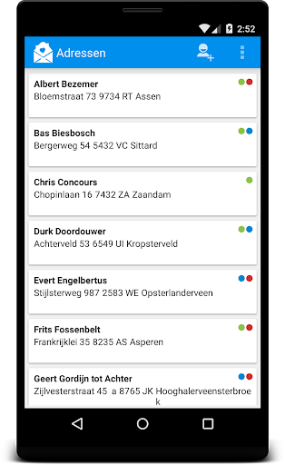 This app lets you register addresses. You can view an address on a map and you can define keywords to classify addresse. You can print an overview of addresses to a pdf file, as a list or on label sheets.