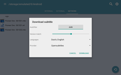 - Download subtitles for videos to your phones SD-card or a PC (network share/drive: Samba/SMB and SFTP/SSH are supported)