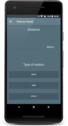 It requires you to fill in a date & time of arrival and your travel time. When to Leave? then gives back a time & date on which you need to leave in order to make it on time. You can also calculate the time it will likely take to travel a given distance, based on configurable average speeds, for walking, running and cycling.