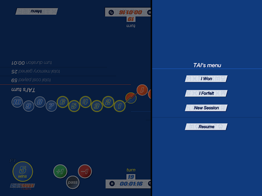 Sessions are automatically saved on your device, so you can pick where you left off. Facing another opponent today? You can also start a new session using the menu button.