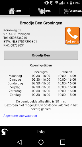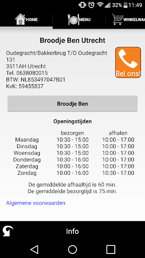 Welkom bij de app van Broodje Ben. Met onze app kunt u: