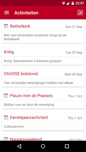 •  Agenda om komende activiteiten te bekijken. Opgeven voor activiteiten kan eenvoudig met twee kliks.