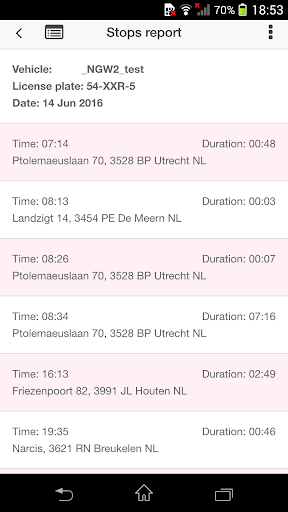 2. Stops report: Look at the vehicles’ stops
