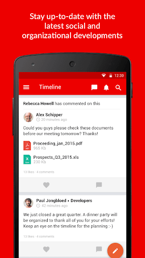 Share new knowledge, ideas and internal achievements quickly and easily with the rest of your team, department or organization. Enrich messages with pictures, videos and emoticons. Simply keep track of new posts from your colleagues, organization and partners.