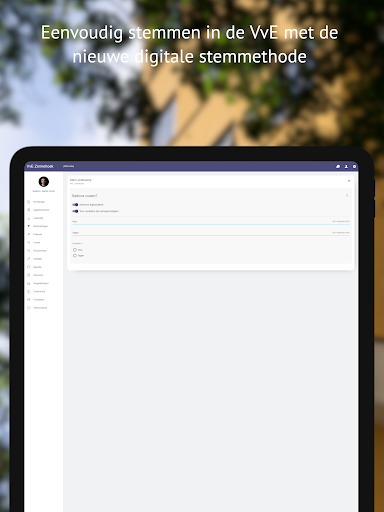Alle Bewohner erhalten ihr eigenes Konto, um sich bei der VVE -App anzumelden.Sobald Sie sich angemeldet haben, können Sie Informationen über die VVE über die App oder über die Website austauschen.Zum Beispiel werden das Protokoll der letzten Sitzung oder der Finanzjahresbericht.