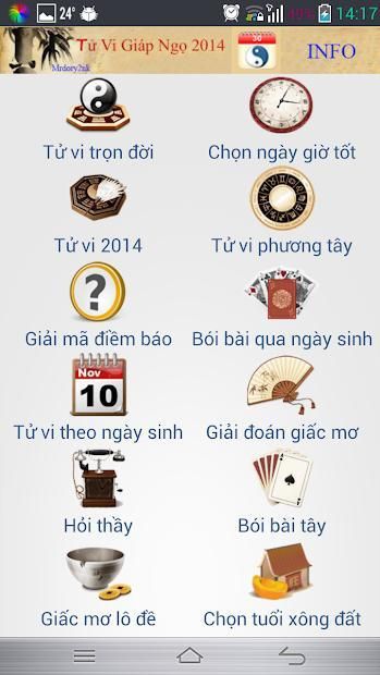 (sau khi xem trực của ngày nhấn INFO để xem ý nghĩa của trực, cách tốt và xấu của can chi, cách tốt và xấu của ngũ hành nạp âm)