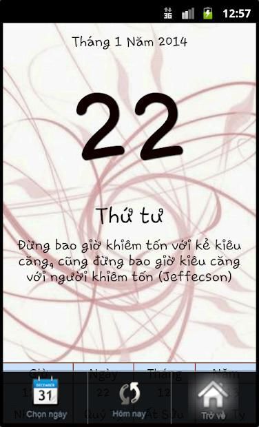 + Lịch Âm Dương : khi vào xem lịch nhấn phím menu để xem ngày khác.