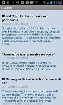 BI Mobile keeps you up to date with your current activities and news from BI. Furthermore it has a fully integrated search engine for scientific articles delivered from BI's library.