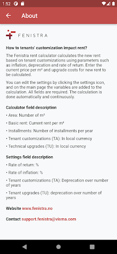The Fenistra rent calculator calculates the new rent based on tenant customizations using parameters such as inflation, depreciation and rate of return. Enter the current price per m² and upgrade costs for the new rent to be calculated.