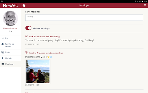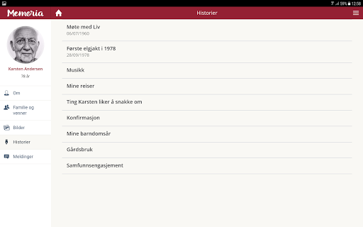 Memoria is a digital platform that enables better individual care based on each persons own story and memories. Memoria lets family members and friends share the persons’ life story through photos, stories and relations, and make it easily available for professional caregivers.