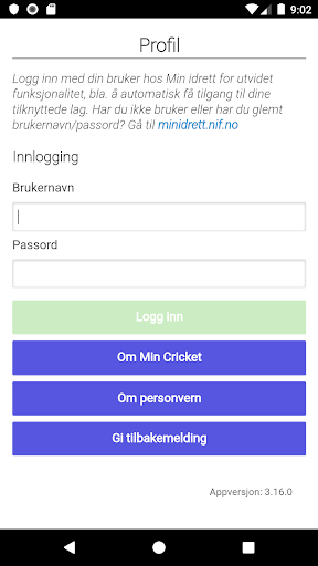 mungkin untuk menggunakan kriket saya tanpa masuk, tetapi untuk pemanfaatan fungsionalitas aplikasi yang optimal, kami sarankan Anda membuat pengguna di http://minidel.nif.no. Anda dapat membuat ikatan dengan anak-anak Anda dan hubungan lain, sementara klub bertanggung jawab untuk menjaga nomor dan dukungan bermain.
