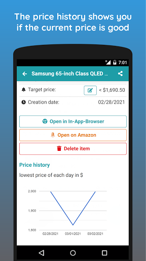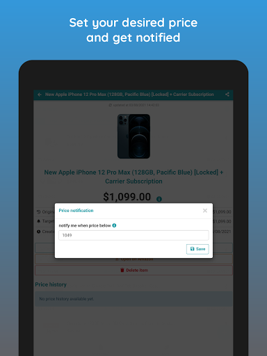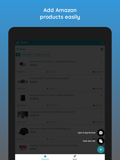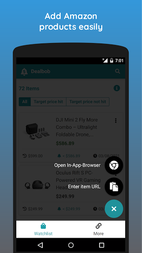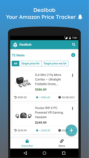 With Dealbob, you can save Amazon items to your own watch list. The prices are then automatically checked every hour and as soon as the price drops, you will be informed via a push notification. You can also specify a target price, below which you will only be notified. Dealbob is the app for you if you want to track Amazon prices and save big!