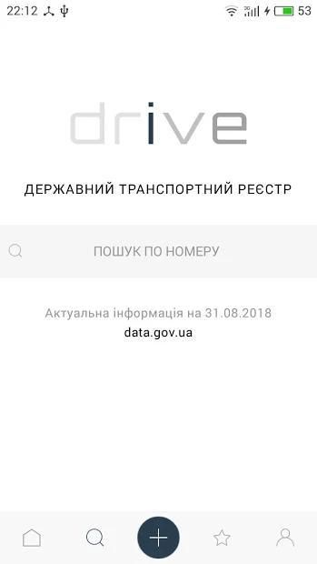 Додаток Drive забезпечує інформацією про транспортні засоби та їх власників. Здійснює пошук автомобіля за його номером. Джерелом поданої інформації є єдиний державний портал відкритих даних, створений на вимогу Закону України «Про доступ до публічної інформації» та постанови Кабінету Міністрів України від 21 жовтня 2015 р. № 835 «Про затвердження Положення про набори даних, які підлягають оприлюдненню у формі відкритих даних».