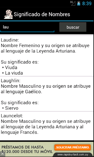 1) Cuando presionas sobre el significado de un nombre, este se copiará al portapapeles, para que luego puedas pegarlo en otra app (enviarlo por SMS, en Facebook, twitter, etc.)