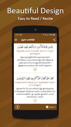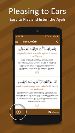 Assalamu Alaikkum. Yaseen Tamil is a very good application for Everyone. In this app, Yaseen Sura has given with arabic text, tamil transcription, tamil translantion (Tarjuma) and Audio. It will also helpful for those who cannot read Arabic.