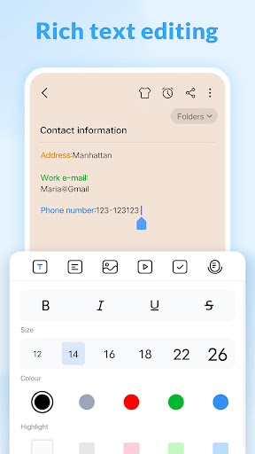✓ Offline notepad, write down all notes, no need connection to the Internet, ADD picture, voice, videos to note, classify notes to folders