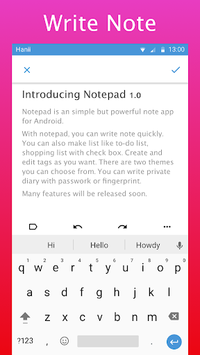 is the simplest notepad app for android free. You can write