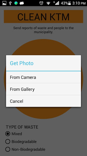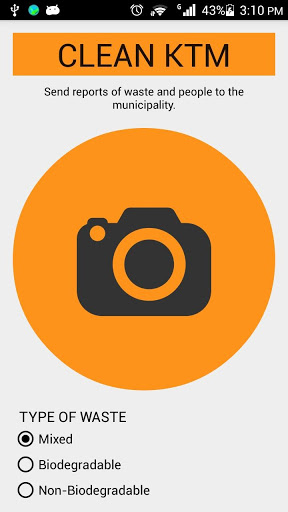This application has been backed by the Kathmandu Metropolitan City Office. The app is aimed for people who want to contribute to making Kathmandu Metropolitan City cleaner. One can do so by sending a report which can be viewed by the municipality office which in turn will be used to send pickup trucks to pick the respective waste.