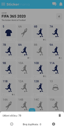 Select your collected stickers by tapping on a sticker you have, tap another time to add duplicates for that sticker. When you are close to finishing the album, you can share the stickers you are missing and ask for help.