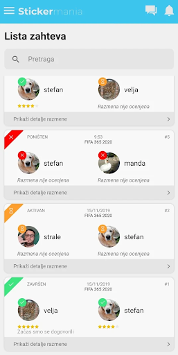 rate the other user and chose to automatically fill your album with the acquired stickers. In case the exchange is canceled it will be labeled as such.