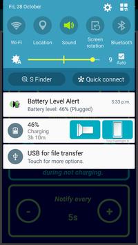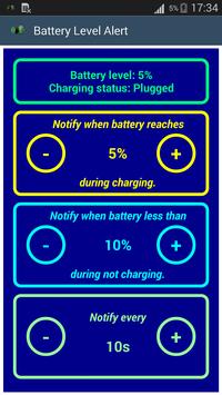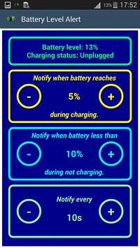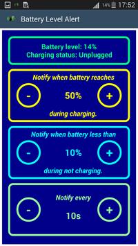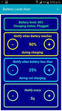 This app will create alert by 'voicing' the current battery level if it reaches certain level during charging (you set the level) or if it gets lower than certain level (you the one who decides) to prevent the overcharge or overuse problems.