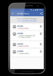 10. แชร์ผลตรวจหวย หรือผลออกสลากฯ ไปยังแอปต่างๆ ได้ เช่น Line, Facebook, อื่นๆ โดยผลตรวจหวยจะจำลองเป็นรูปแบบใบสลากฯ อย่างสวยงาม สมจริง ตรวจเสร็จแชร์หน้าจอได้ทันที