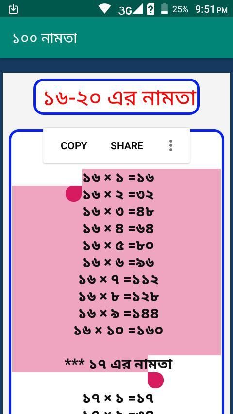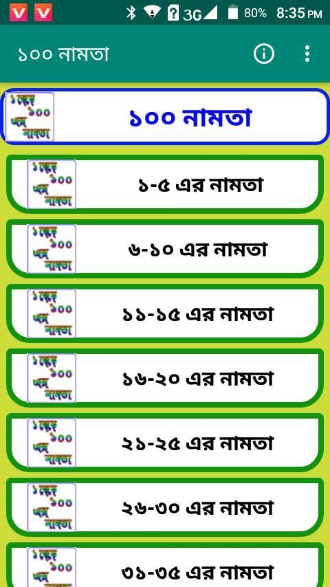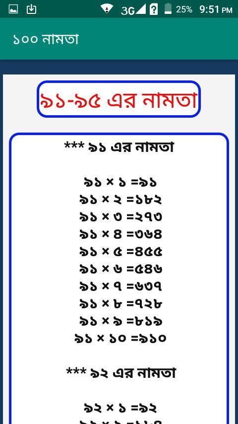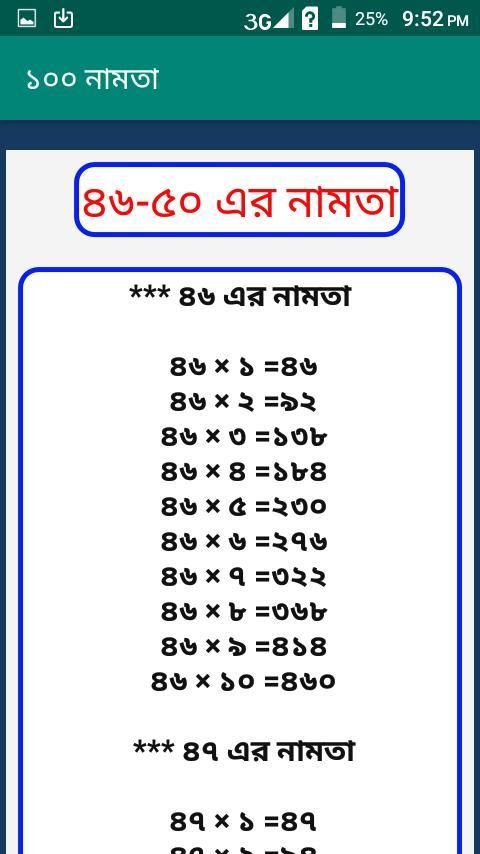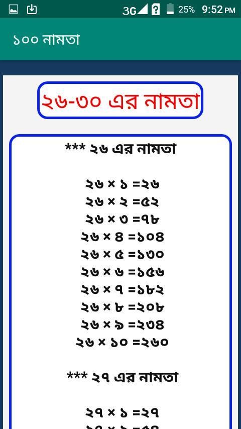 আমাদের ছোট এই অ্যাপসটিতে ১ থেকে ১০০ এর নামতা খুব সুন্দরভাবে দেওয়া আছে।