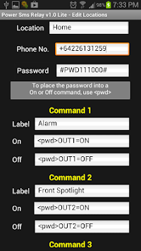 Location: This is a description for a group of commands. eg Home, Workshop, Bach etc. Each Location also has a phone number and password assigned to it.