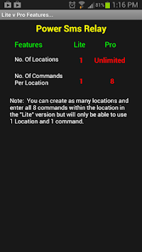 Test Mode button: If placed in test mode all buttons will be shown in both Lite and Pro versions. This allows you to double click the ON or Off button to display what would have been sent via sms at the top of your screen.