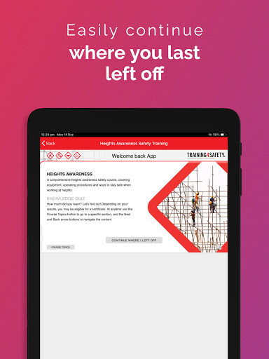 Courses can be completed through the app at your leisure and you will receive an electronic certificate upon successful course completion.