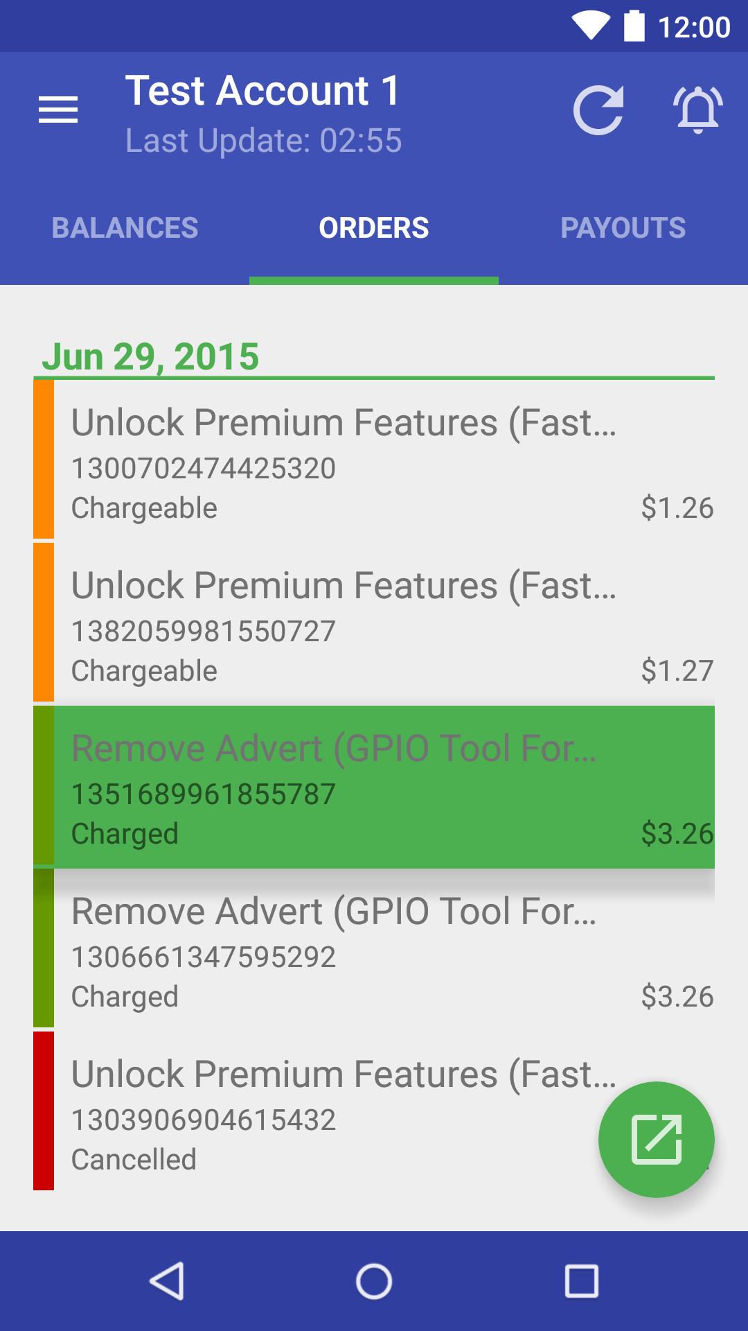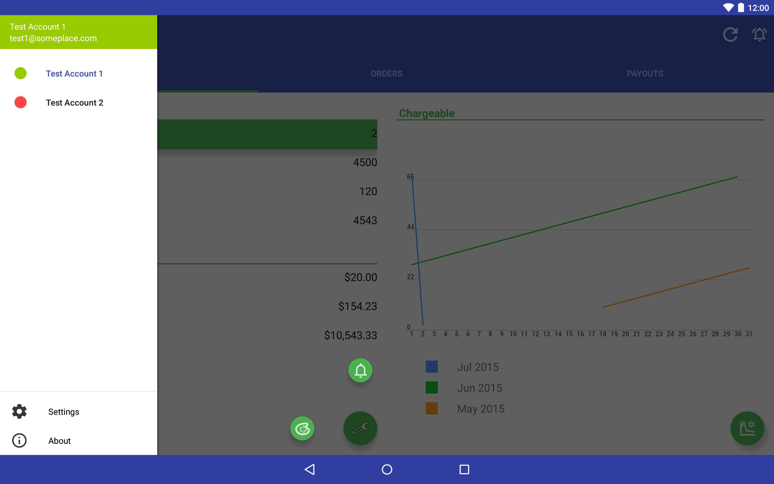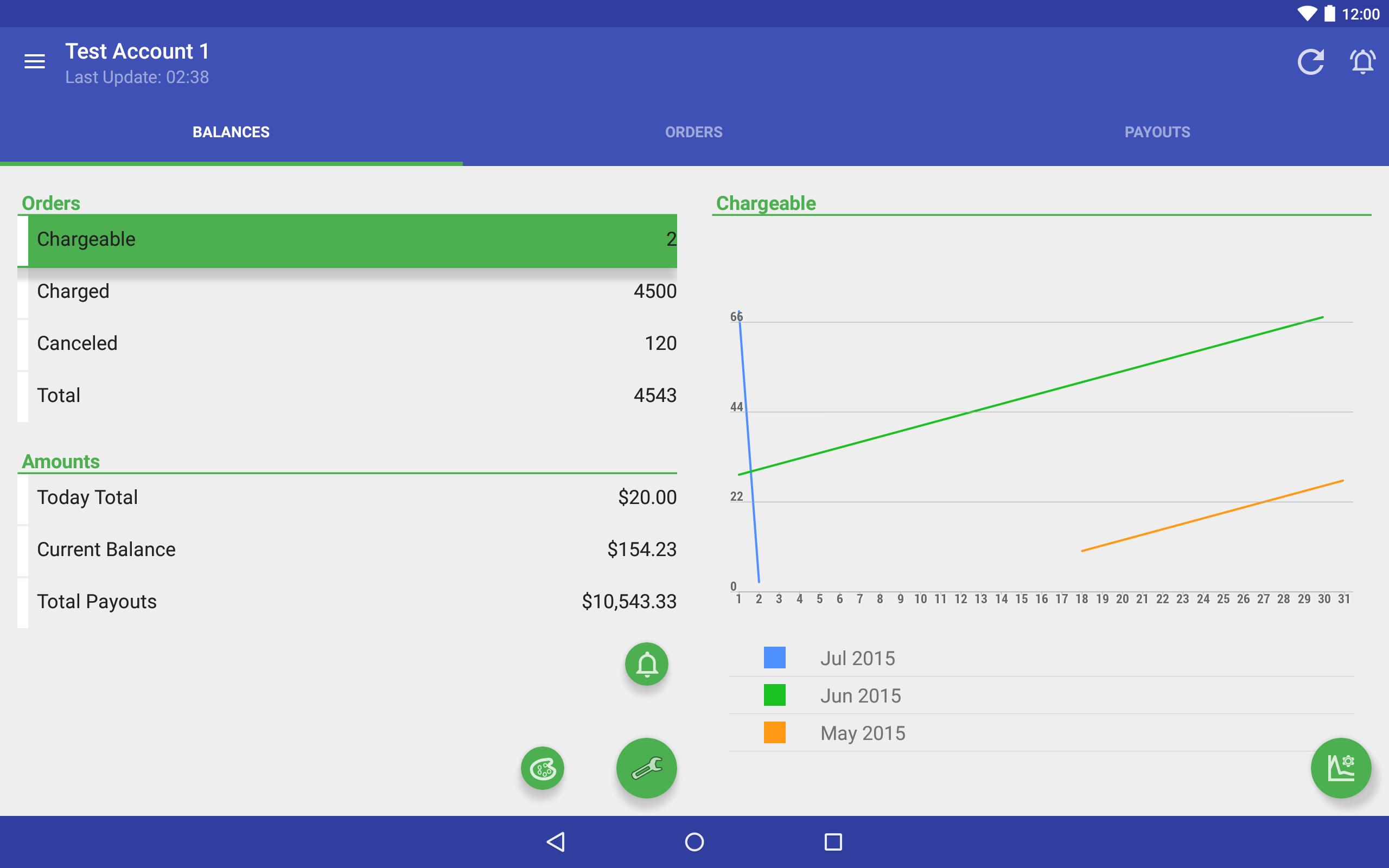 * Orders - Chargeable, Charged, Cancelled, Refunded, Rejected, Total.