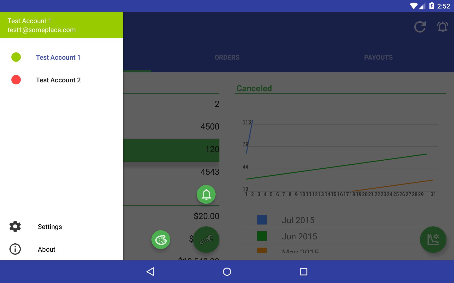Displays Orders & Payouts & Order Information.