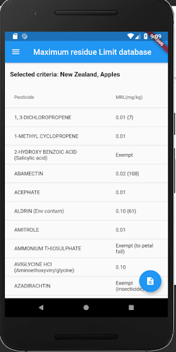 This database has the maximum residue limits (MRLs) allowed for most pesticides used on fruit and vegetable in some main countries.