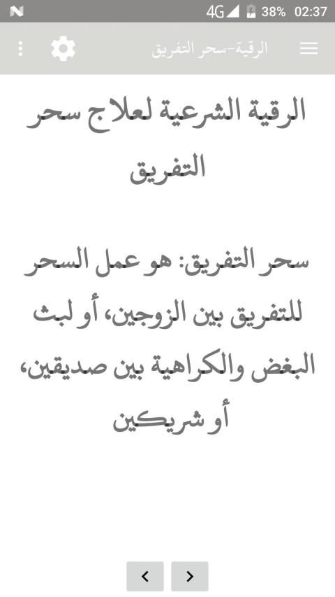 • Using the buttons Alosfielan in the application of paper magic differentiating can go to the page or the previous section or next to see the following verses for ruqyah written to live up yourself from the magic eye, envy, touch and other symptoms of magic and eye and touch and touch the lover.
