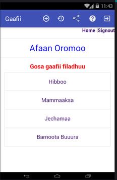 Gaafile madala sammuu Kan akka : - Gaafilee Afaan Oromoo - Gaafilee Seenaa - Gaafilee Barnoota garagaraa fi kan kana fakkataan .