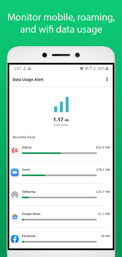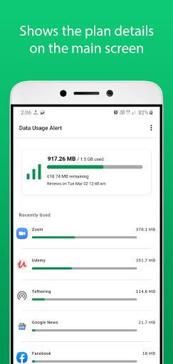 The app sends notifications when you reach 80% and 100% of the data limit you specified in the plans. It saves you from paying extra charges to your mobile carrier.
