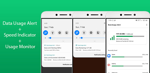The "Data usage alert, speed indicator, and usage monitor" app does 3 things. It indicates the current network speed on the status bar (not in the notification bar), sends alarm notifications when you reach the data limit (supports both mobile and roaming networks), and monitors the data usage of all the apps and the device.
