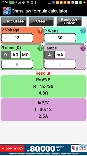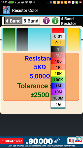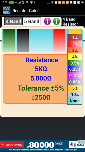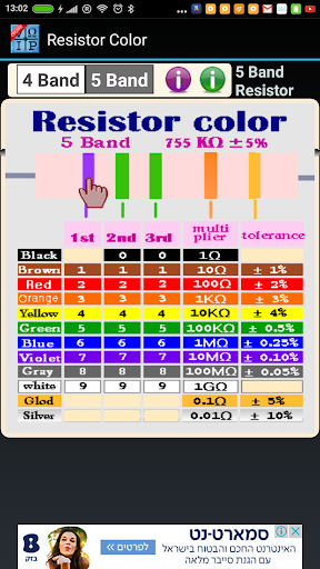 It is also very easy to calculate the resistors. Select 4 or 5 Band and then click on the resistor and the result appears.