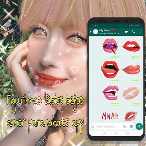 Ứng dụng này chứa một bộ sưu tập lớn các gói nhãn Labial cho WhatsApp. Trong ứng dụng Nhãn dán tình yêu này, bạn có thể tùy chỉnh các cuộc hội thoại Whatsapp của mình bằng một nụ hôn và đôi môi gợi cảm để chia sẻ với bạn. Bây giờ thể hiện bản thân bằng cách sử dụng nhãn dán môi đáng kinh ngạc với Wastickieriappis. "Kiss Môi dán có những nụ hôn và đôi môi đẹp nhất dán cho Whatsapp. Bạn có thể tìm thấy một bộ sưu tập những nụ hôn son đẹp, hàng tấn những nụ hôn tình yêu lãng mạn cho Whatsapp. Tất cả những người yêu nhau có thể tìm thấy biểu tượng cảm xúc hôn hay nhất và chia sẻ chúng với những người yêu nhau.
