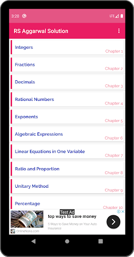 Content of App RS Aggarwal & NCERT Class 7 Math Solution: