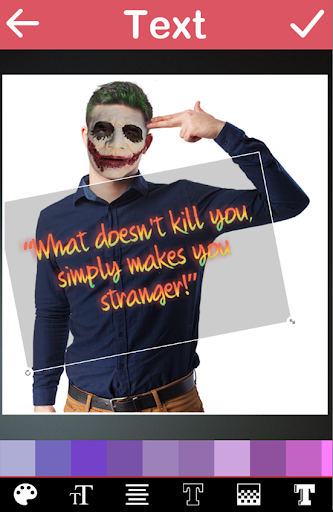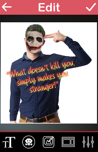 2. Text on Photo - Snap text on Photo with Emoji's included. joker mask clown Text can include Text anywhere on photo with best emoji's added to text. Snap the text anywhere on the photo.