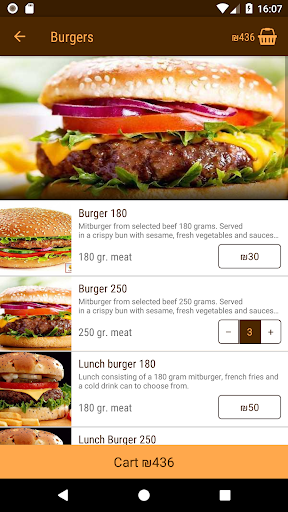 A & M Burgers is a new convenient way to order food from your favorite restaurant. Trying our burgers, pizza, homemade dinners has never been so easy! In the application are available: fast and convenient food order, the current menu, delicious descriptions and mouth-watering photos, interesting promotions and latest news, bonus program for your favorite customers! - 0549843836, ul. Aneveim 35, Haifa