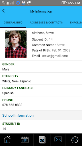 Students and parents can access Student information, schedule, attendance, grade-book grades, calendar events etc. The built-in internal messaging feature provides instant communication between student-parent and staff.