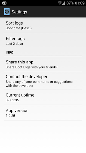 Boot Logs logs your device's boots (and shutdowns), a.k.a. when was your device powered on and off.