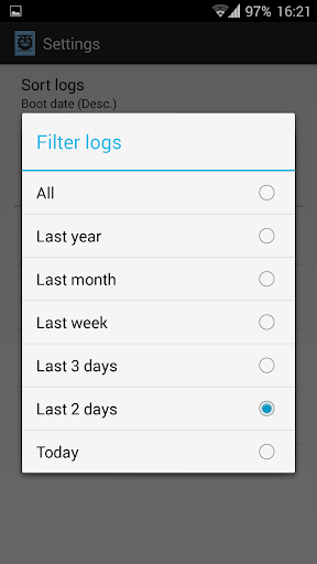 * Filter logs by date: display only logs from last year, last month, last week, last 3 days, last 2 days and today (there is also an option to display all)