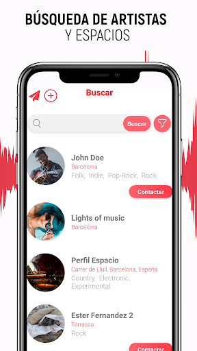 - Boost your musical career. Use our chat and filters to find new spaces and music venues to play and organize your concerts.