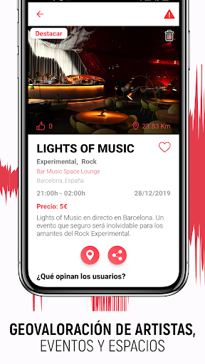 - Discover new emerging artists and interact with them. Follow your favorite artists and rate their concerts with our geovaluation system.