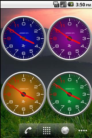 Color Tachometer clock Free EditionA new Color Tachometer Set with new colored clock facesClocks come in 5 color choices: Blue, Purple, Green, Amber, and GrayFree Edition comes with Ads. Help support us by checking the ads or purchasing the non ad app for 0.99 usd ThanksPressing Clock will open clock app on non HTC phones. HTC phones have their own different clock apptags: Cars, tachometer, analog clock, honda, acura, toyota, scion, infiniti, lexus, nissan, bmw, mercedes, audi, vw, volkswagon, lamborghini, ferrari, buggati, chevy, ford dodge,..