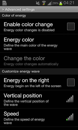 Put a wave of energy in your device! You can choose to customize many features of this wave. When you touch the screen the energy wave increases its speed.